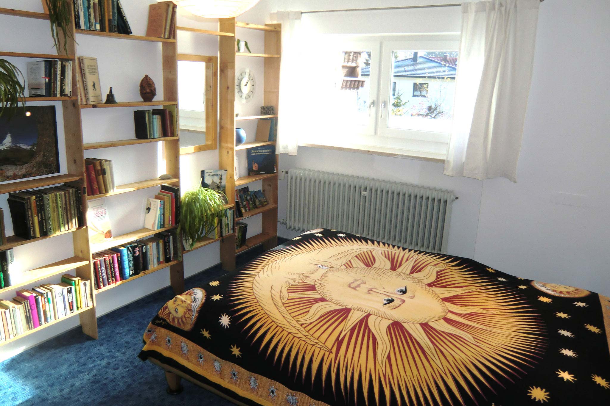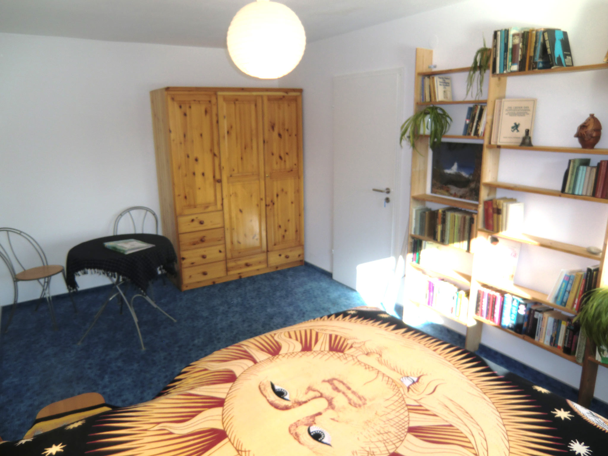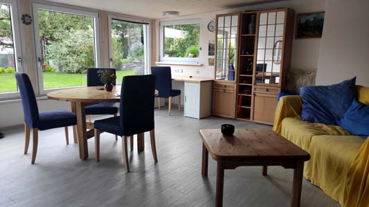 Friendly room (16qm) on the ground floor of our one-family house with its own small guest bathroom. A second door to the corridor guarantees privacy.